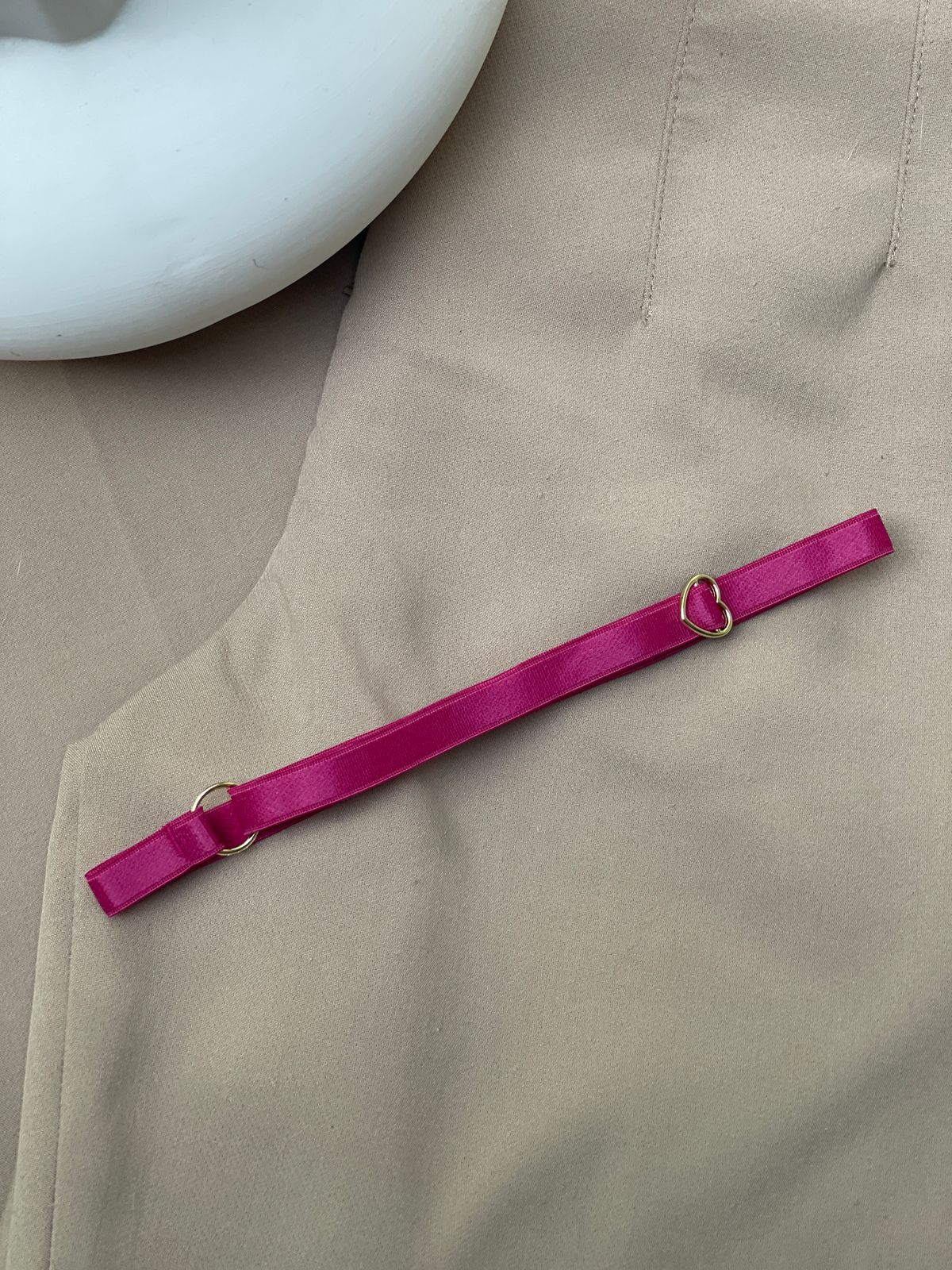 Acessório para perna (persex), com regulagem. Regulador de coração, metais banhados à ouro 24k.