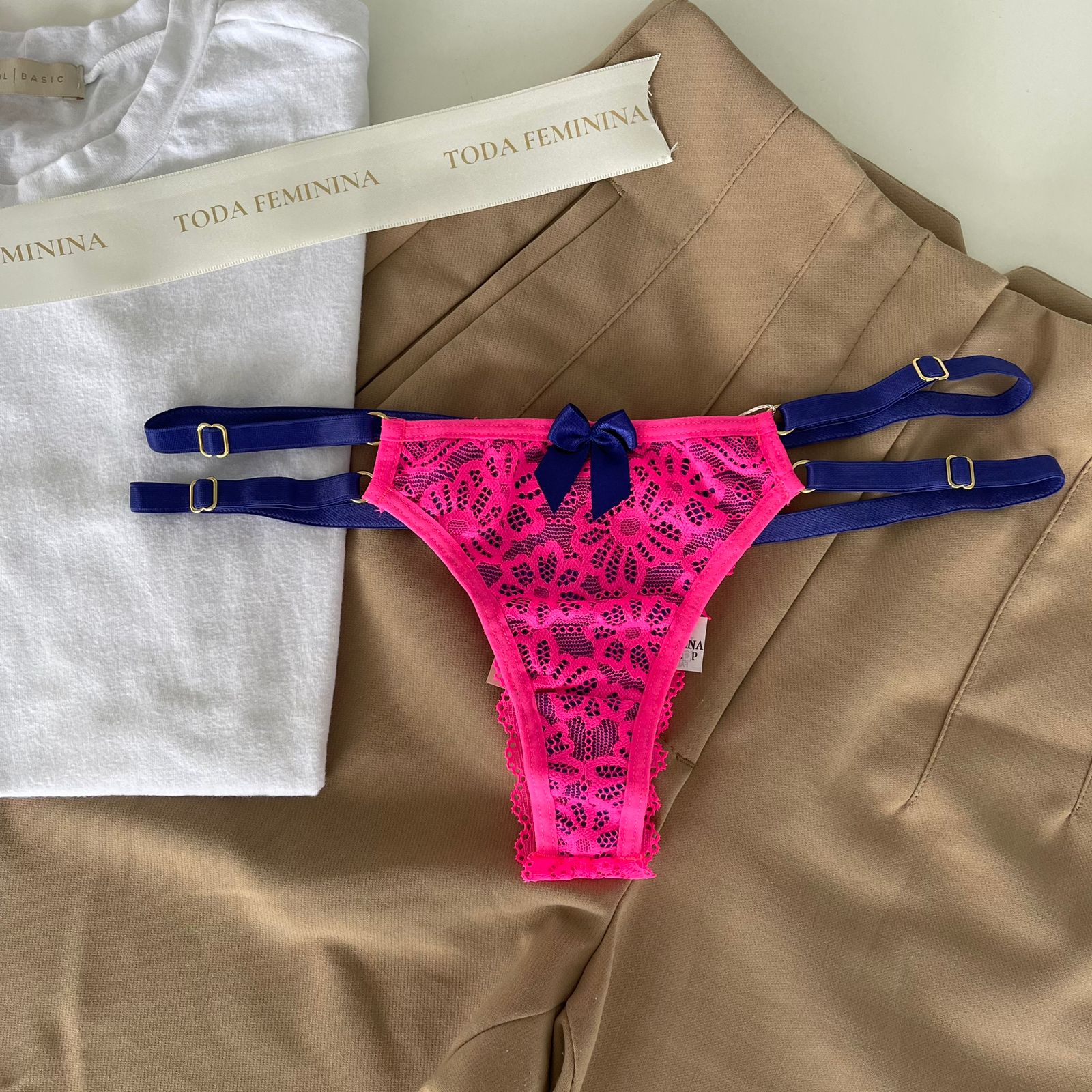 Início>Calcinha Avulsa>CALCINHA FIO DE REGULAGEM>Calcinha string dupla fio dental rosa neon com azul bic – Mia