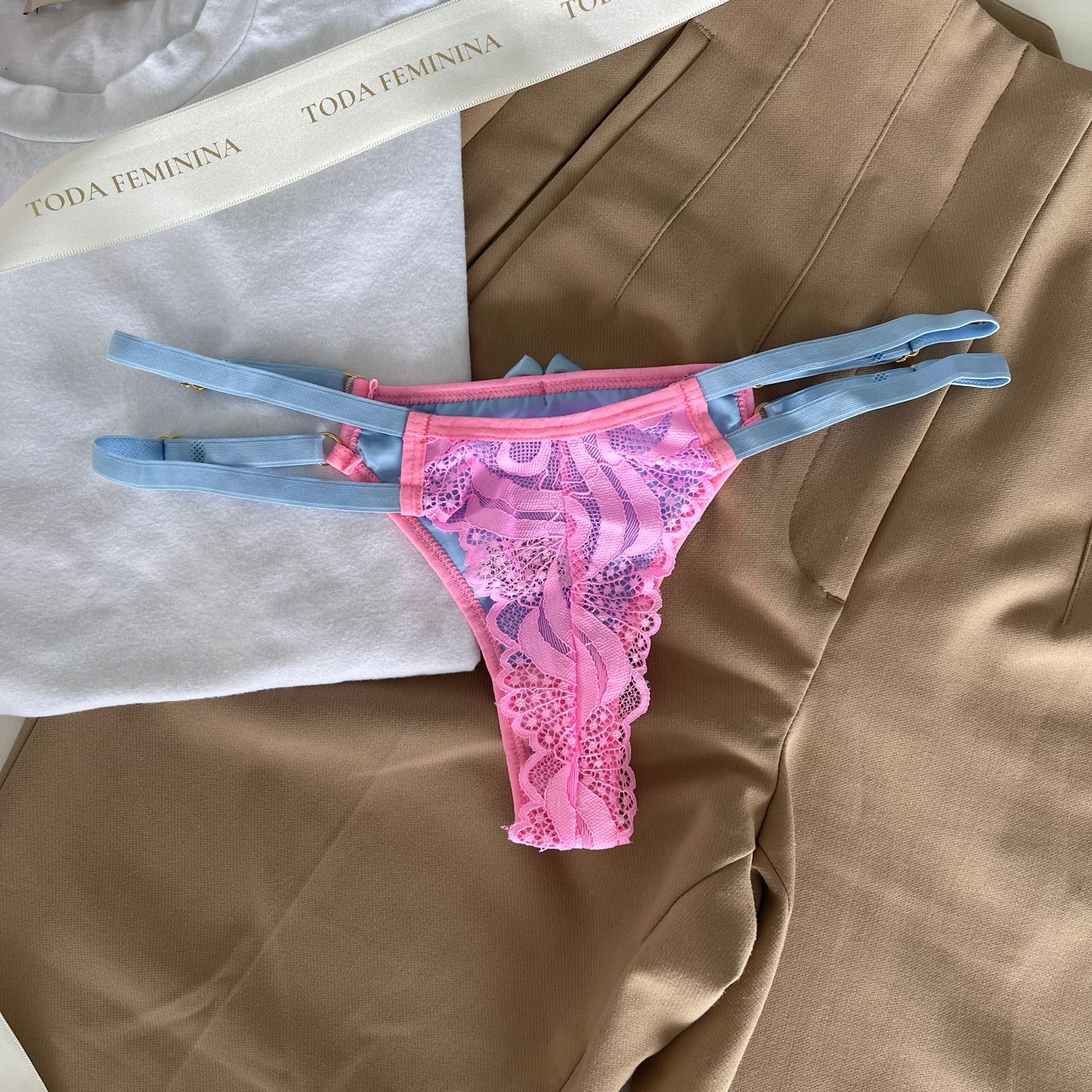 Início>Calcinha Avulsa>CALCINHA FIO DE REGULAGEM>Calcinha string dupla fio dental rosa babaloo com azul claro – Mia