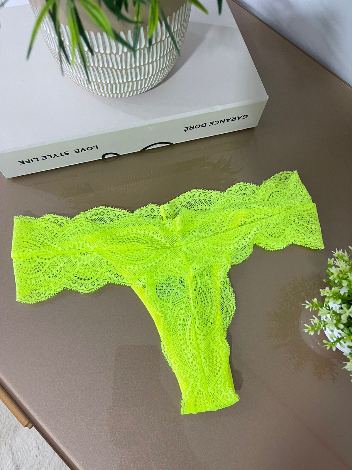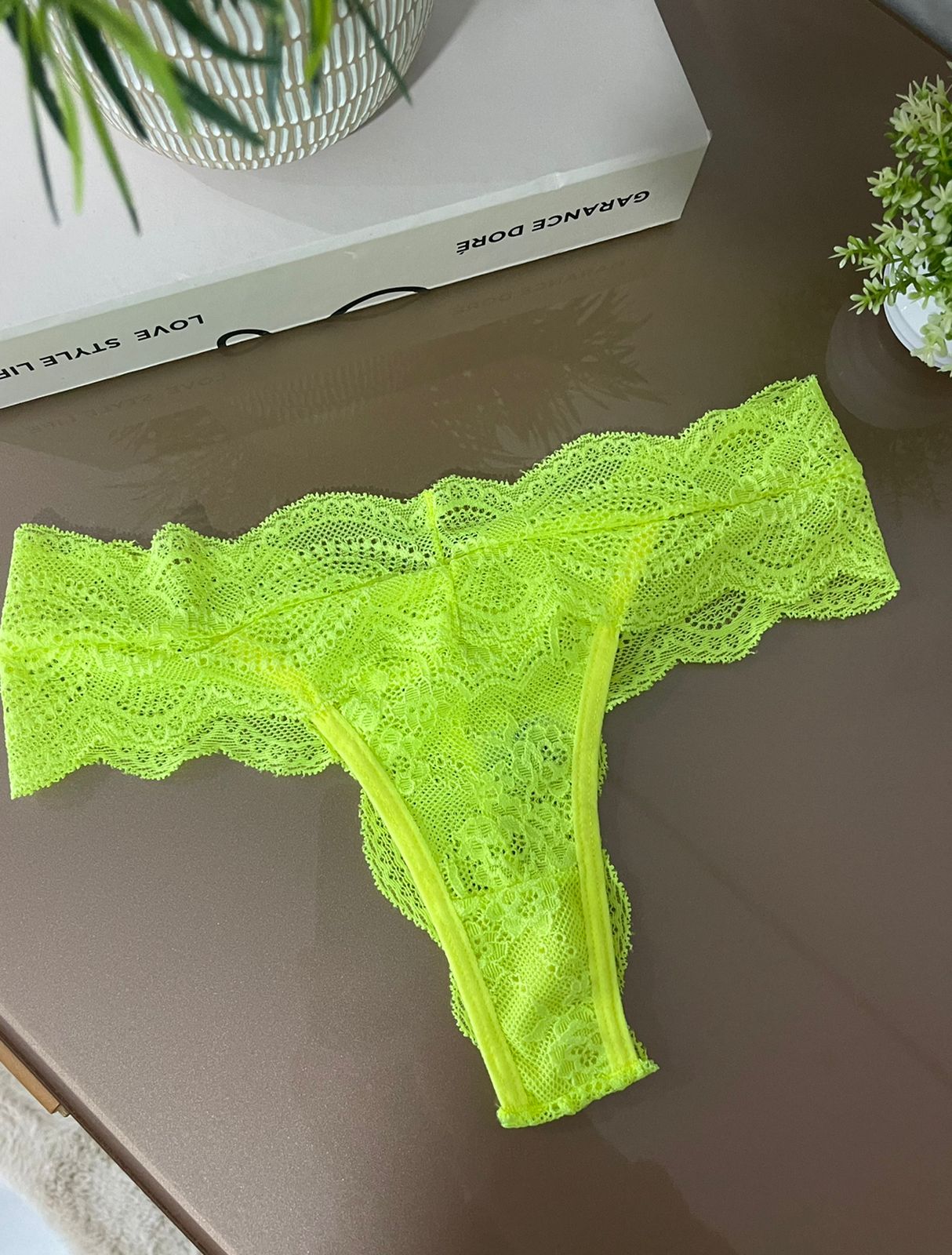 Calcinha renda fio verde neon – Gabriela