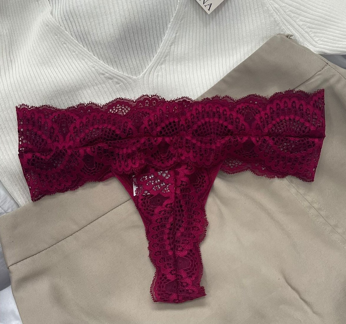 Calcinha fio duplo de renda.