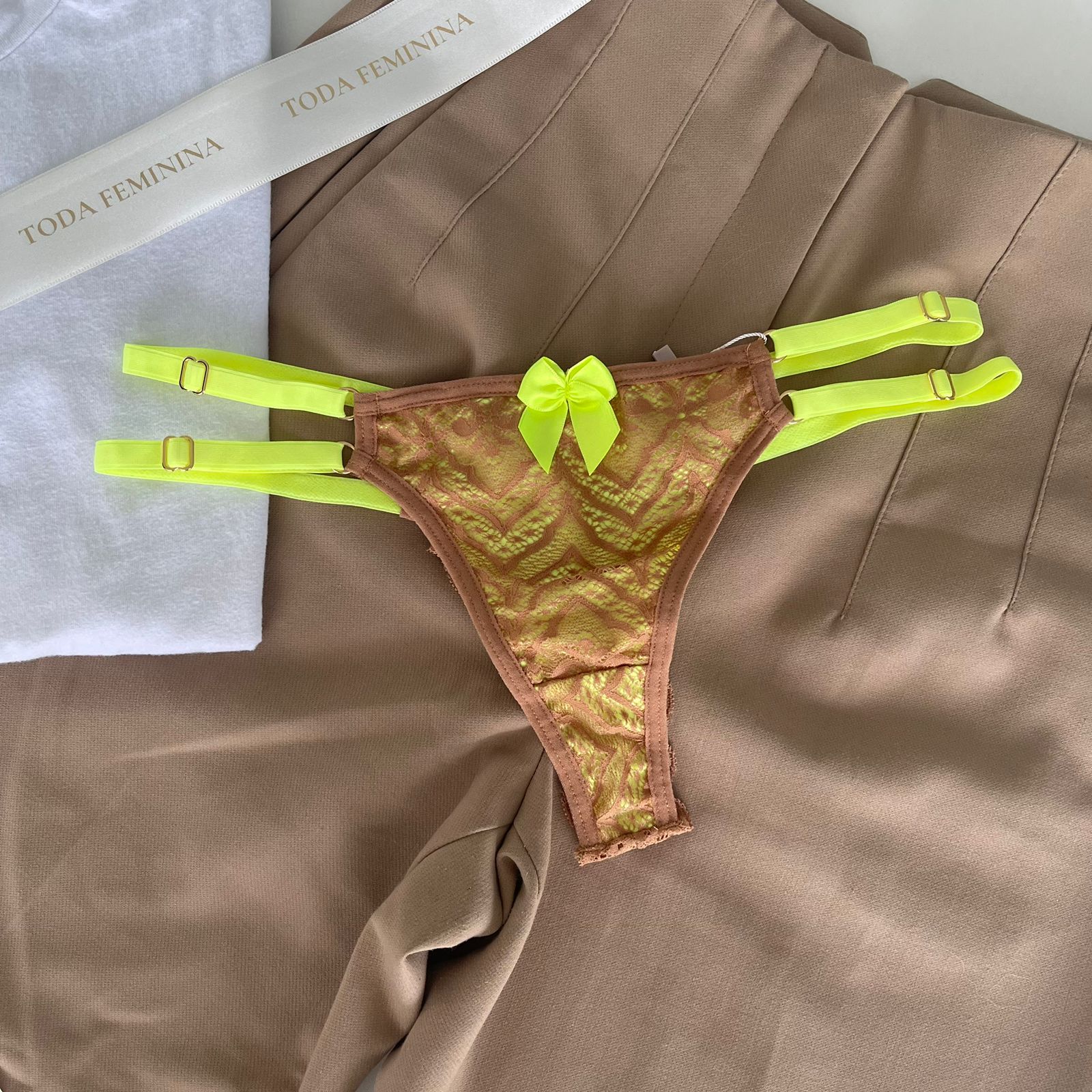 Calcinha string dupla fio dental amendôa com verde neon – Mia