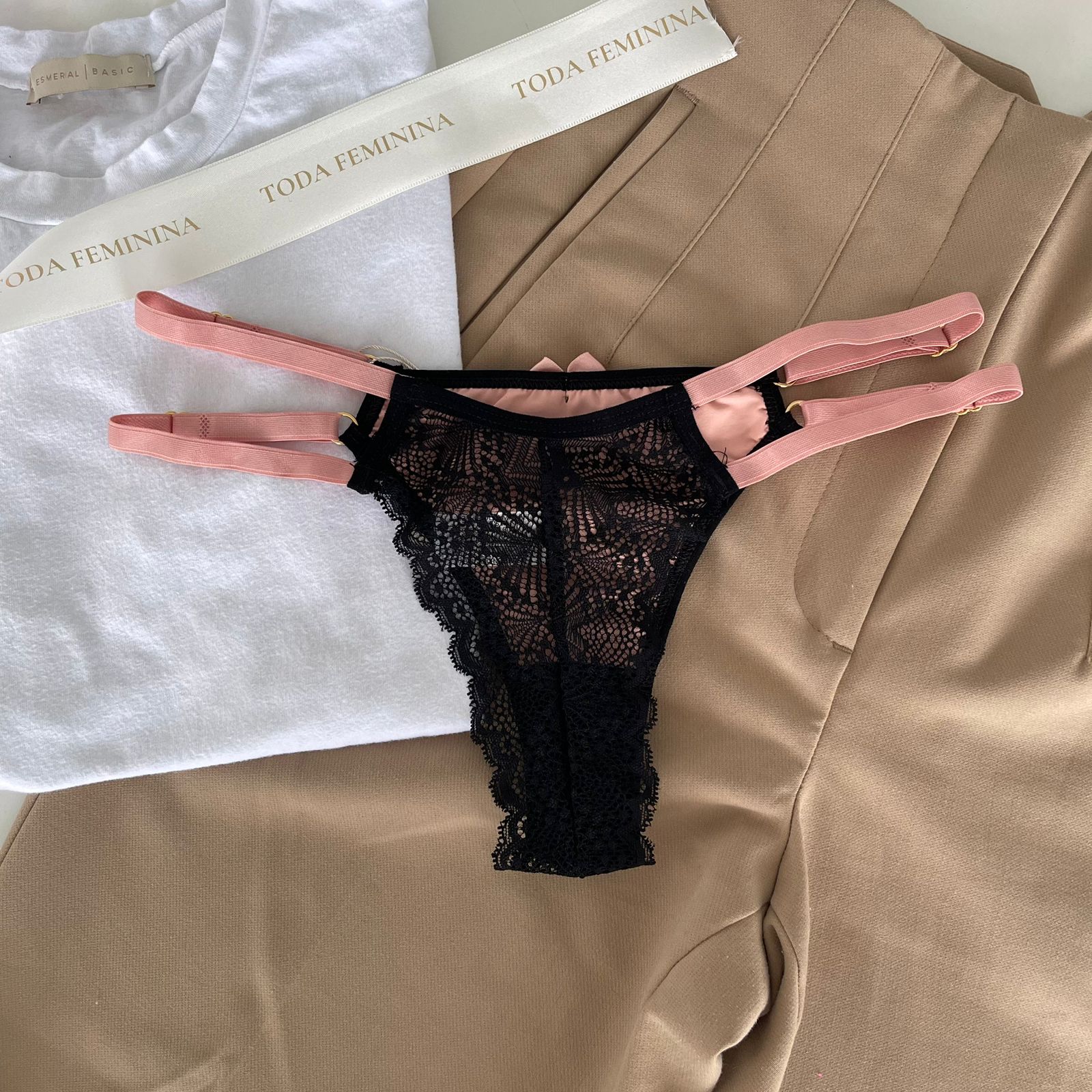Calcinha de regulagem dupla, com forro de microfibra na frente.