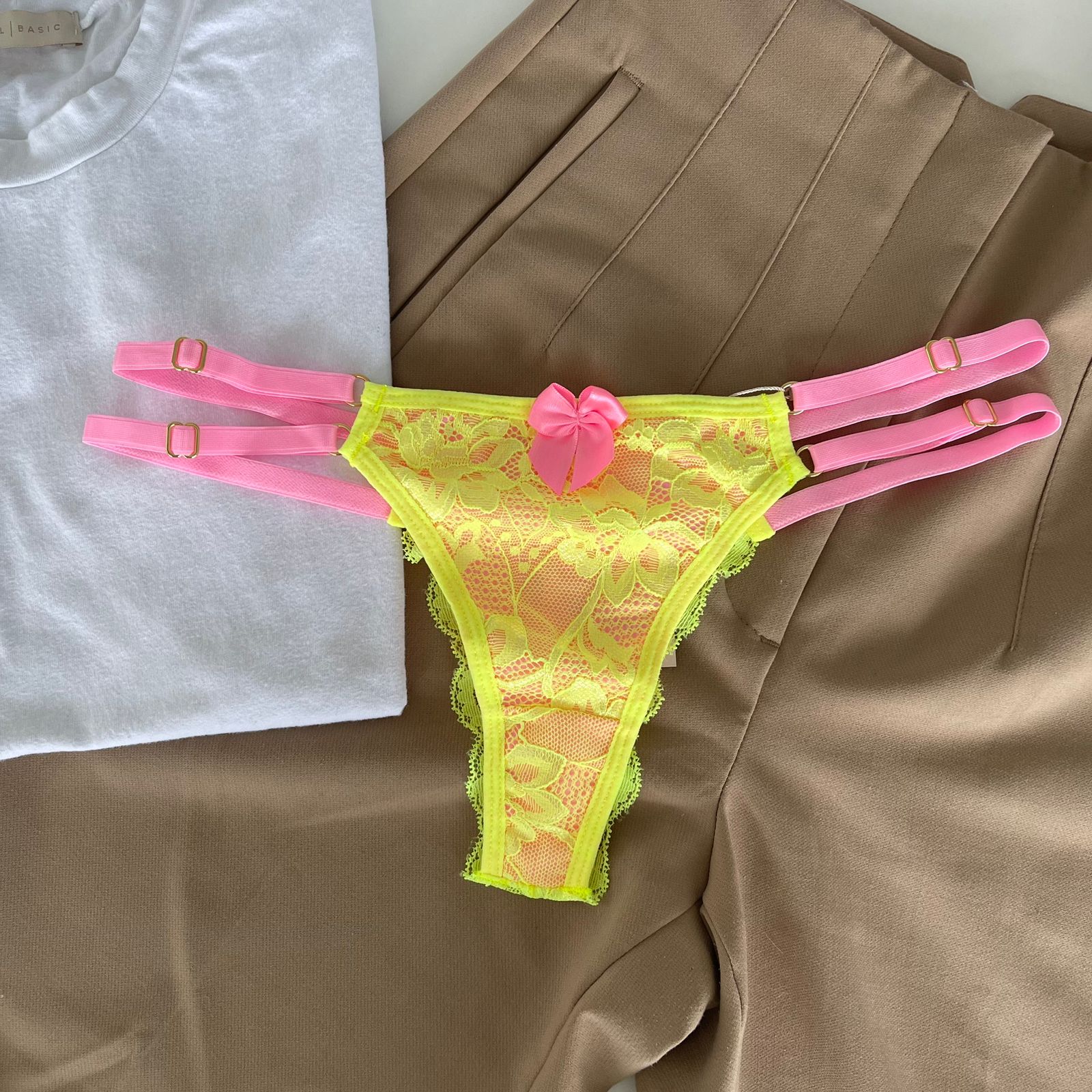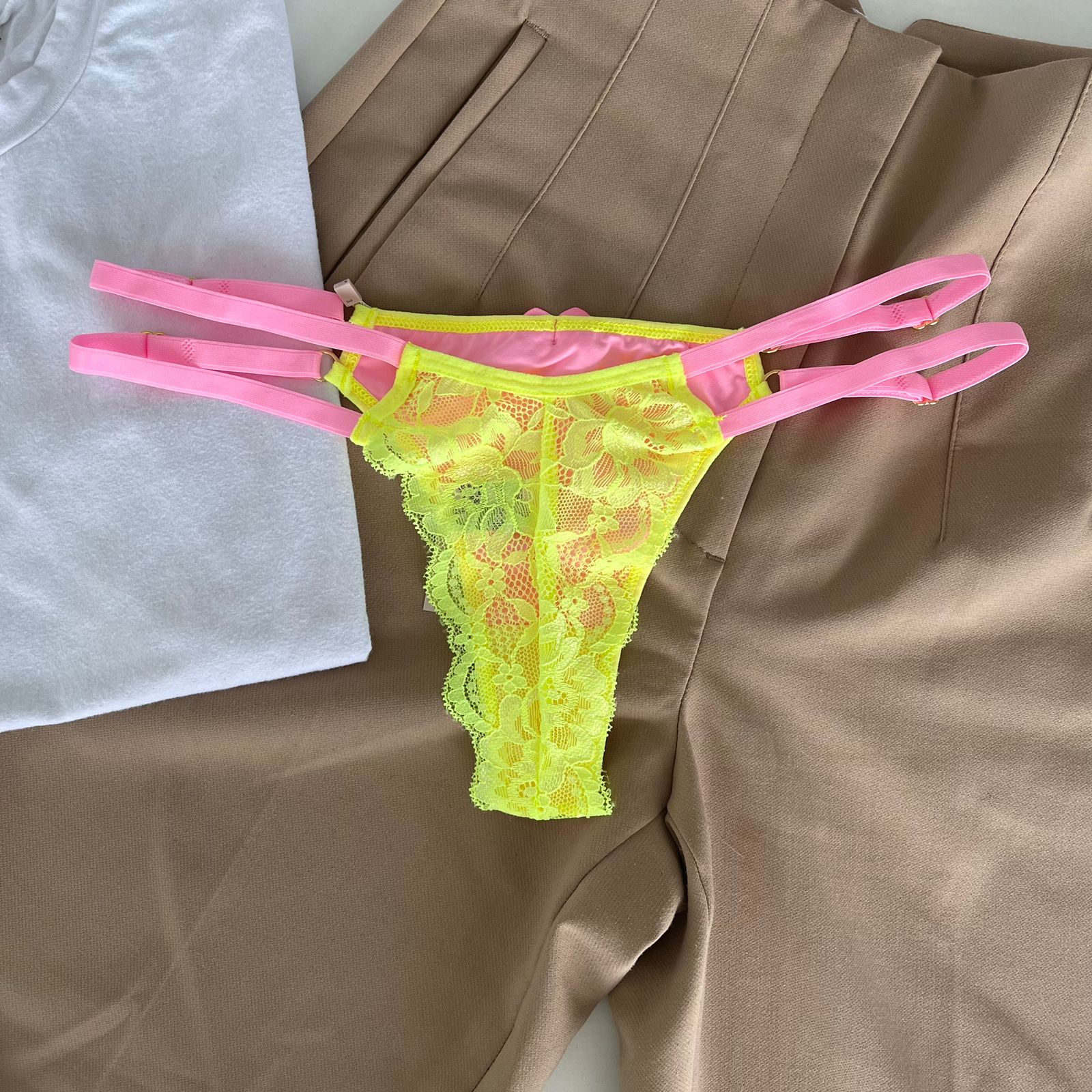 Calcinha string dupla fio dental verde neon com rosa babaloo – Mia