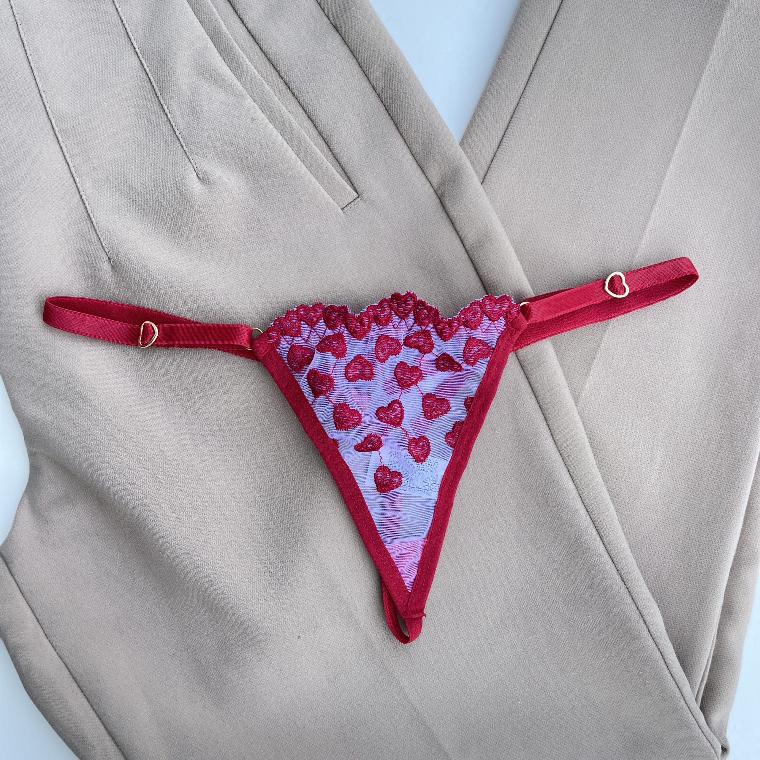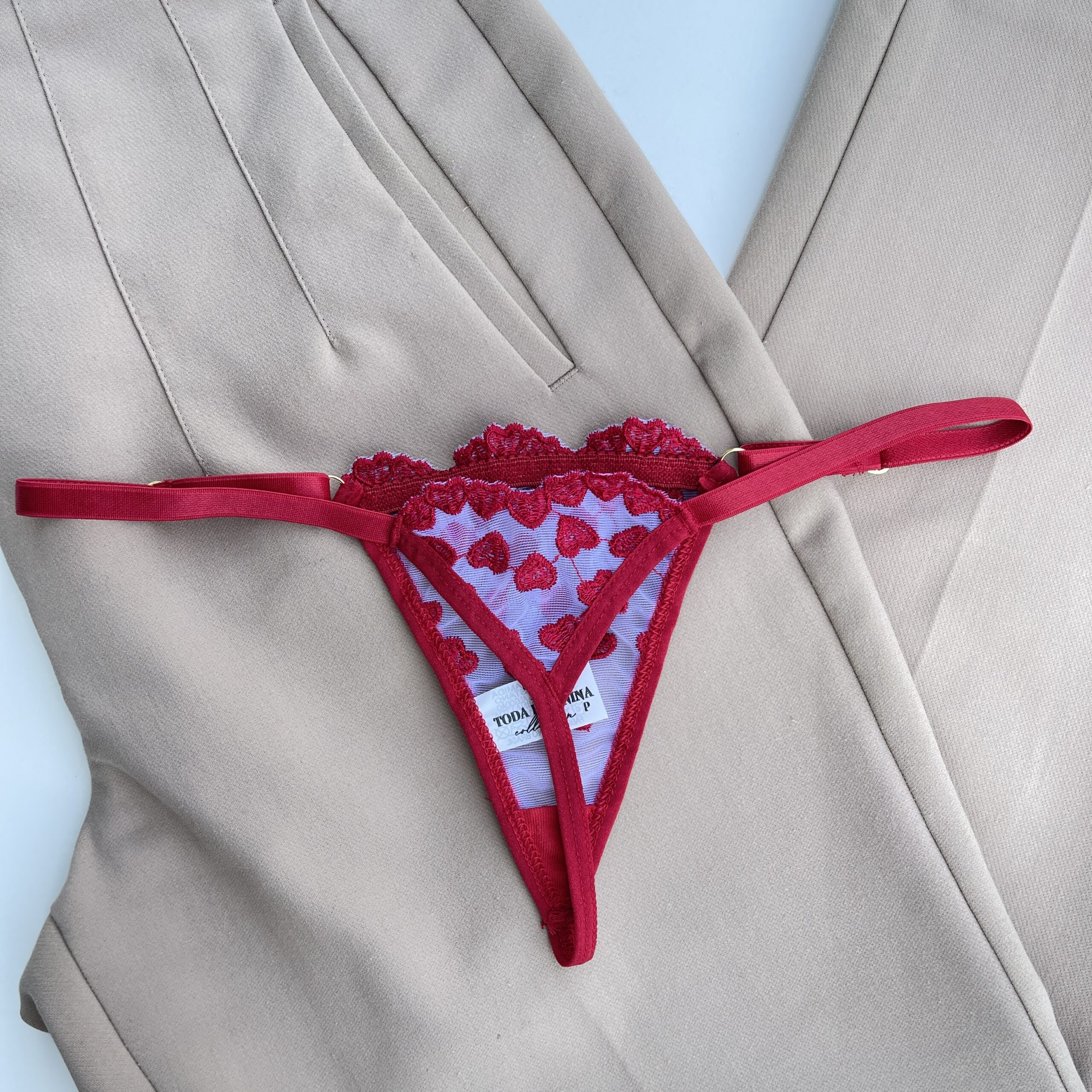 Calcinha String Fio Dental de Tule Vermelho – Vicky