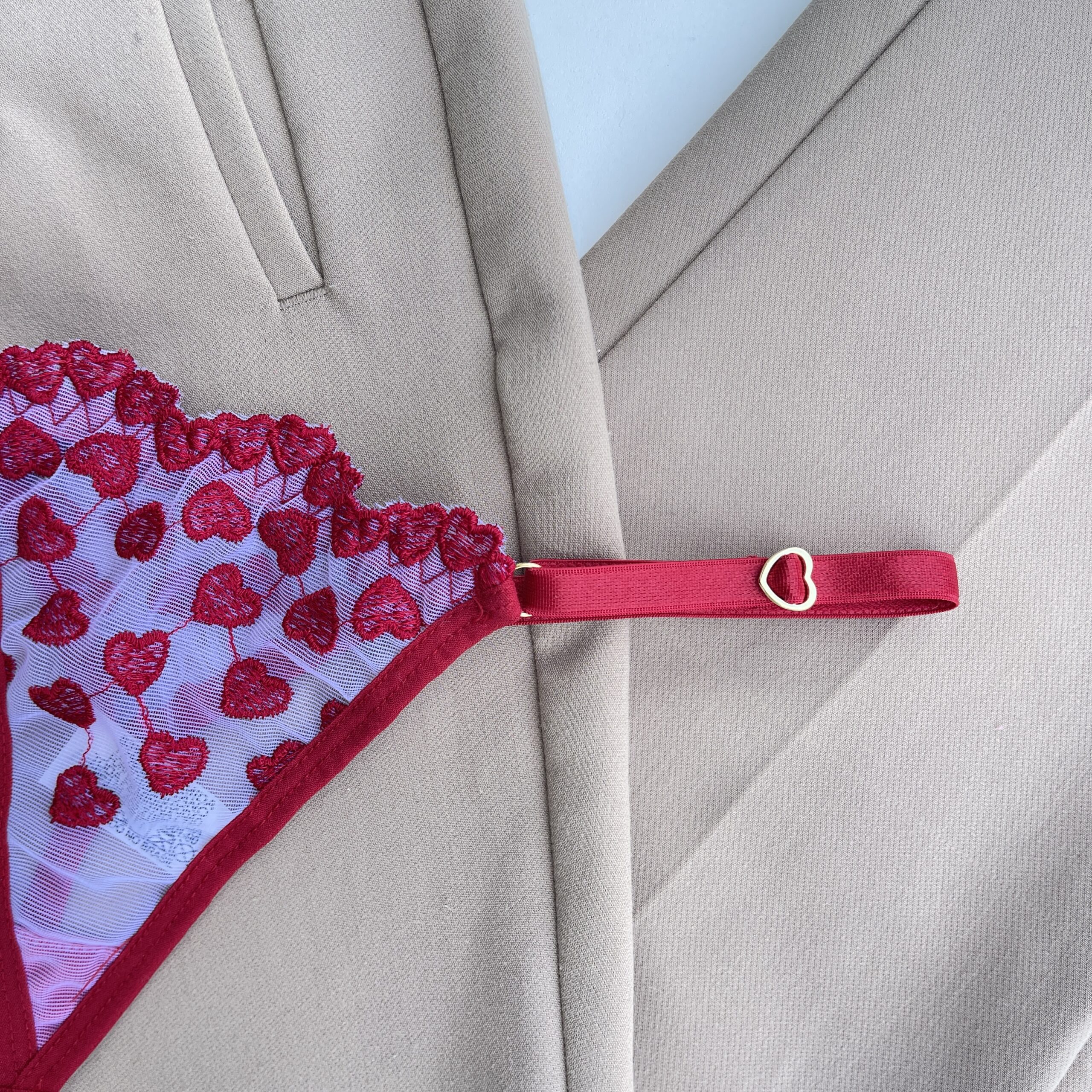 A calcinha Vicky foi desenvolvida com um exclusivo tule bordado em formato de coração.