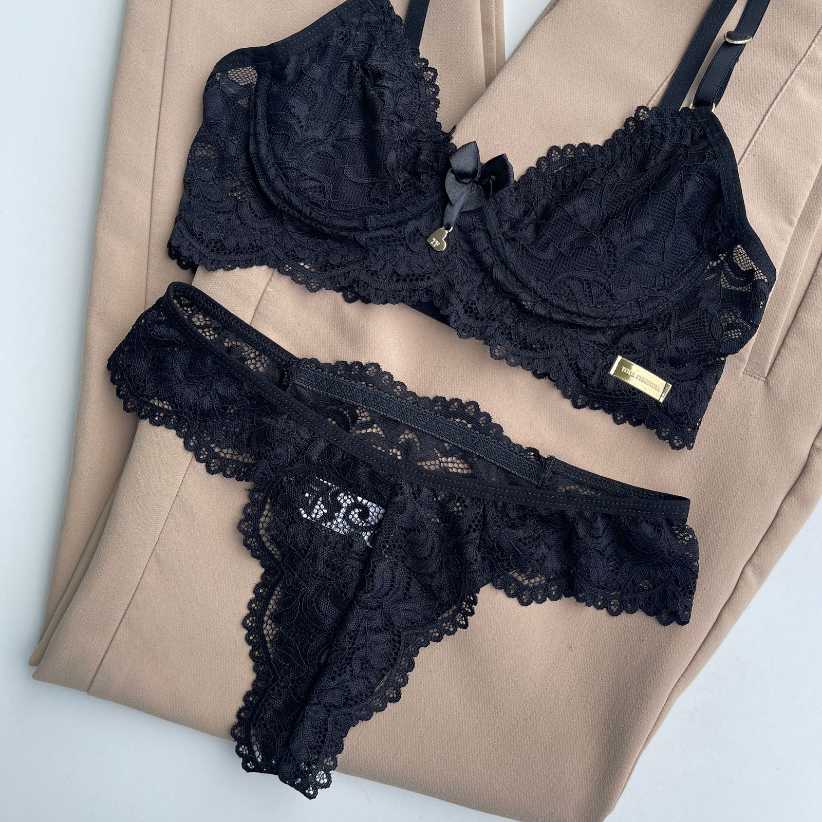O conjunto Anne é uma peça exclusiva, desenvolvida em renda anti alérgica.