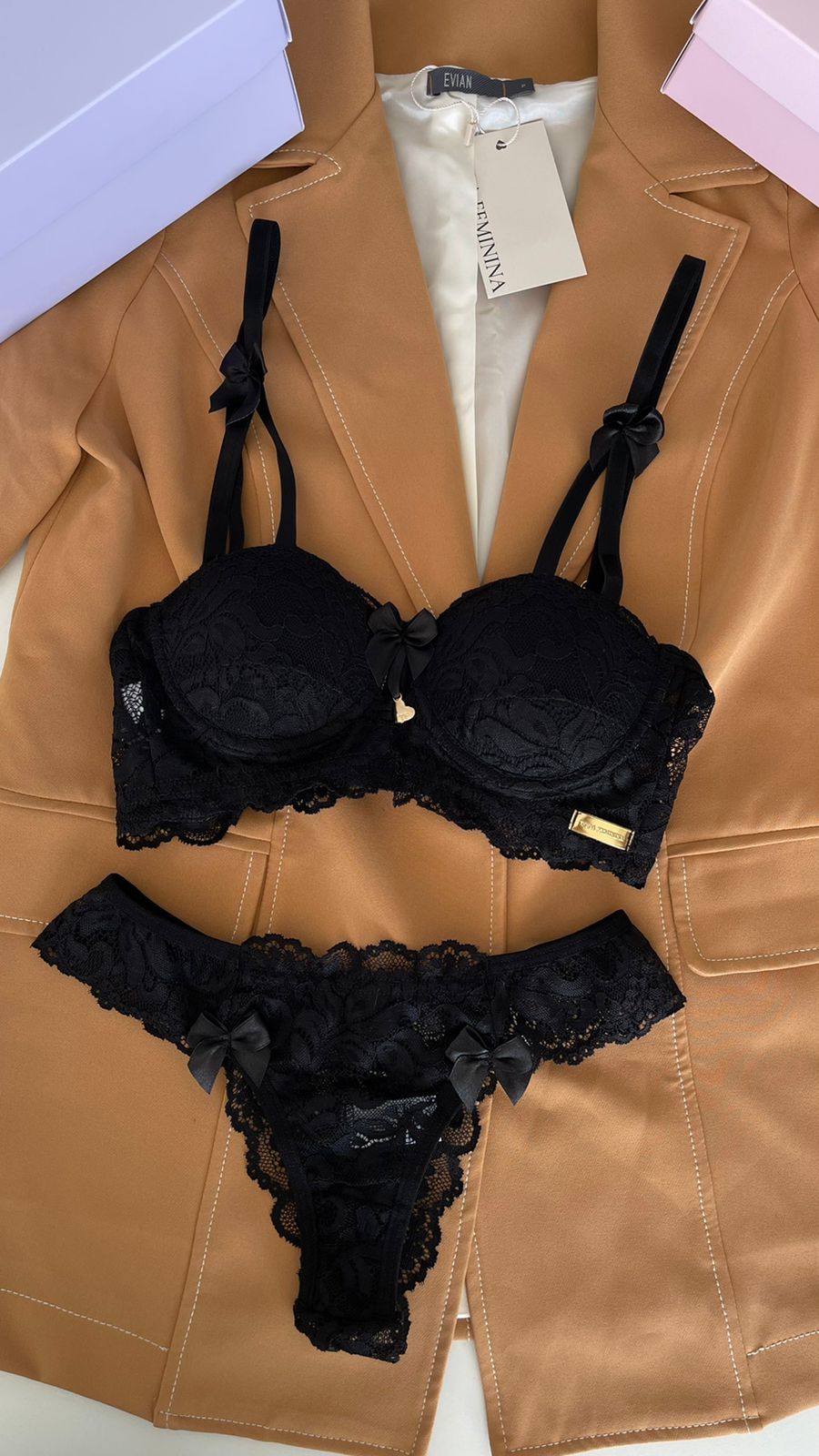 O conjunto Katherine é uma peça exclusiva, desenvolvida em renda anti alérgica.