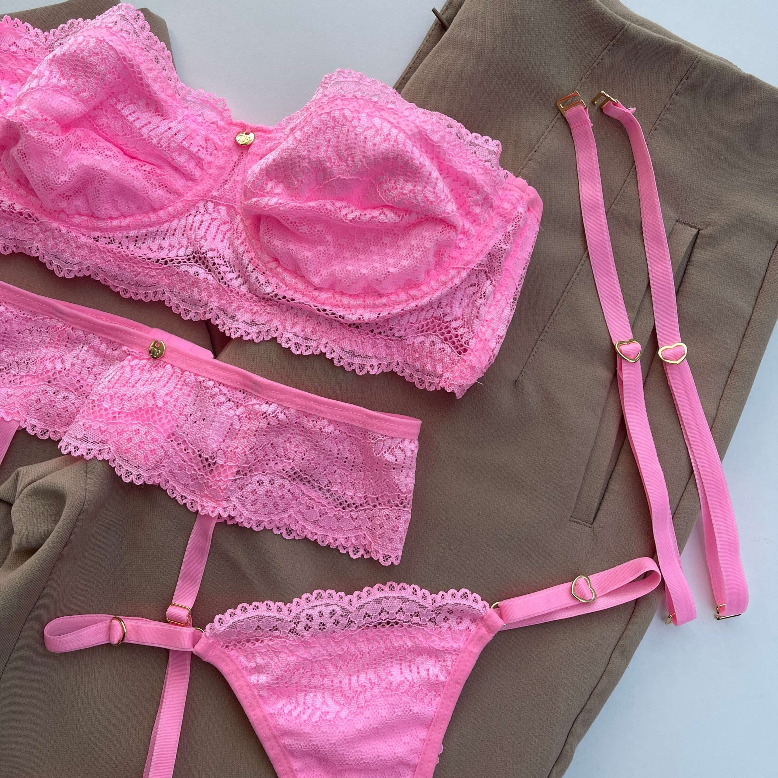 Conjunto De Lingerie Em Renda Sem Bojo Com Aro Rosa babaloo – Cinta Liga