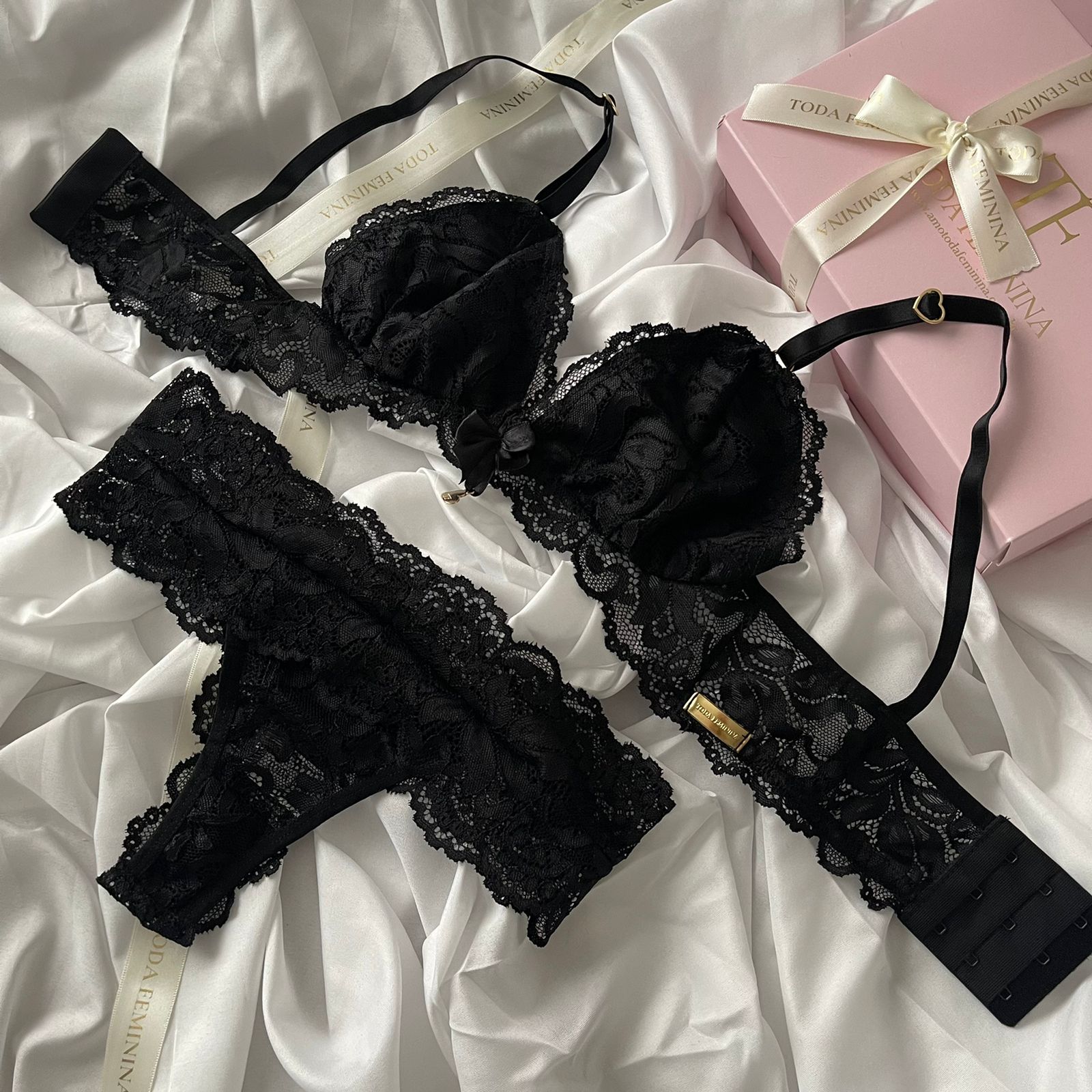 O conjunto Gabriela é uma peça exclusiva, desenvolvida em renda anti alérgica.