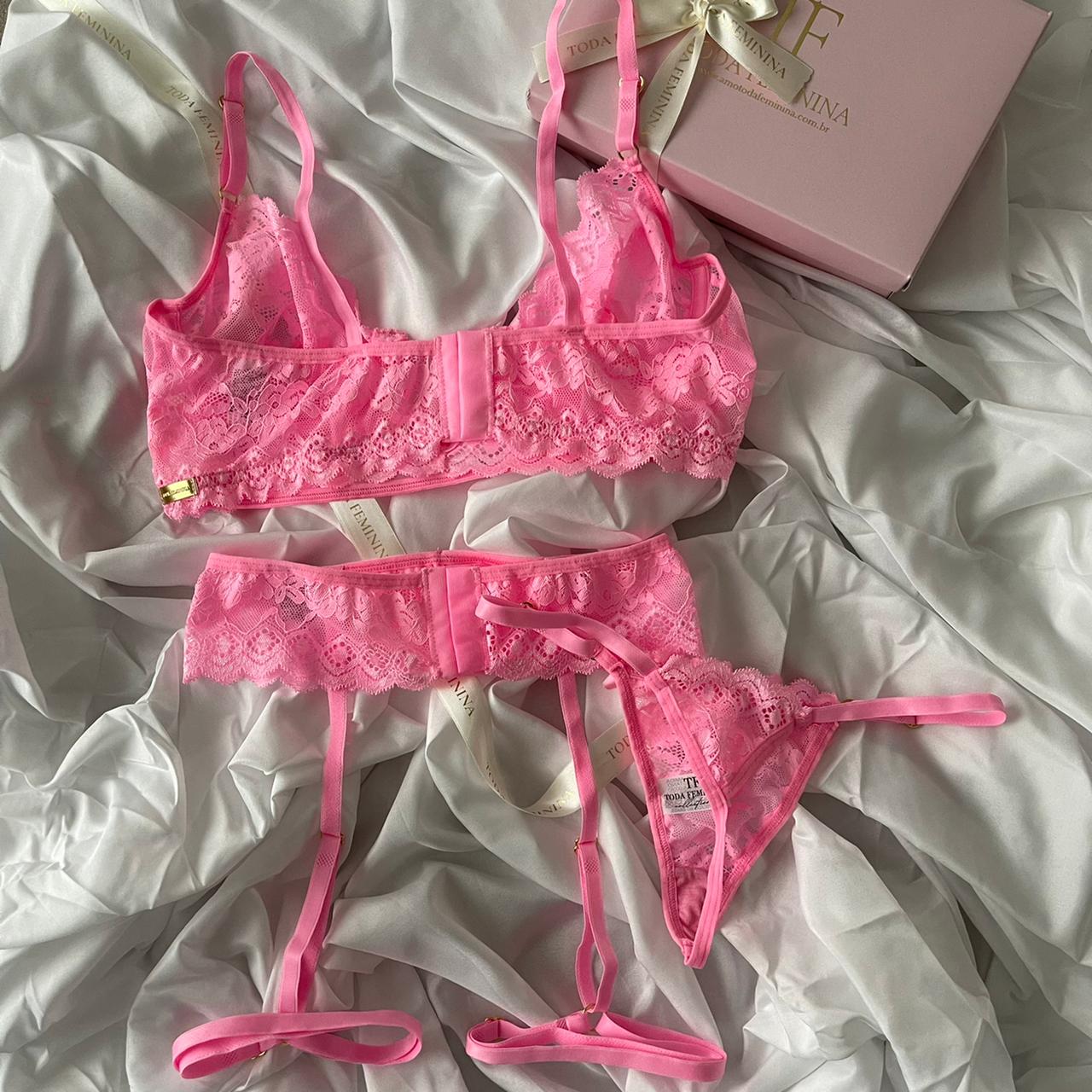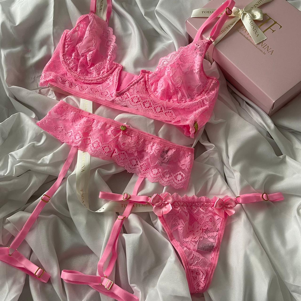 Conjunto de lingerie em renda cinta liga sem bojo com aro rosa babaloo – Scarlet