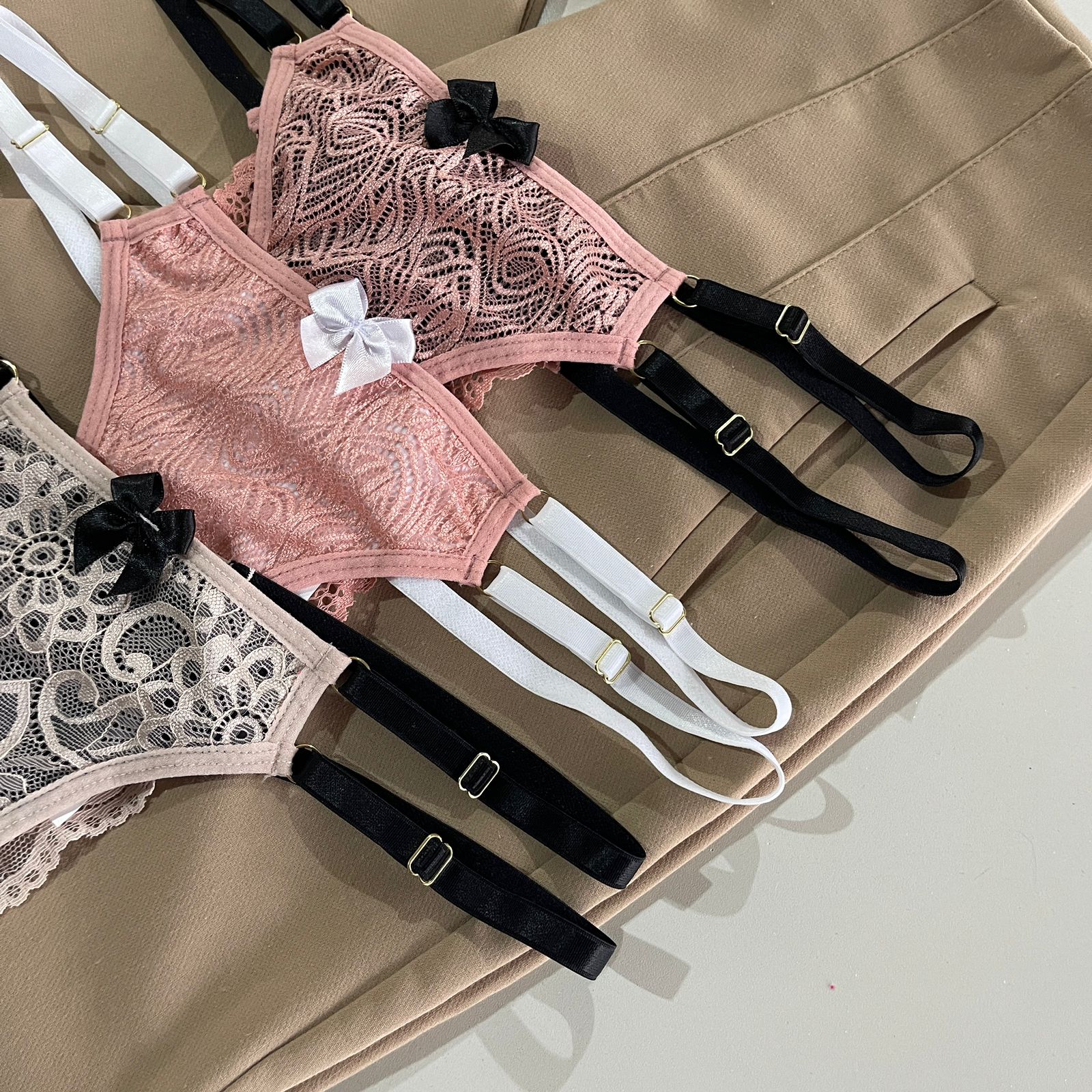 Cores: Romance com preto, romance com branco, nude com preto.