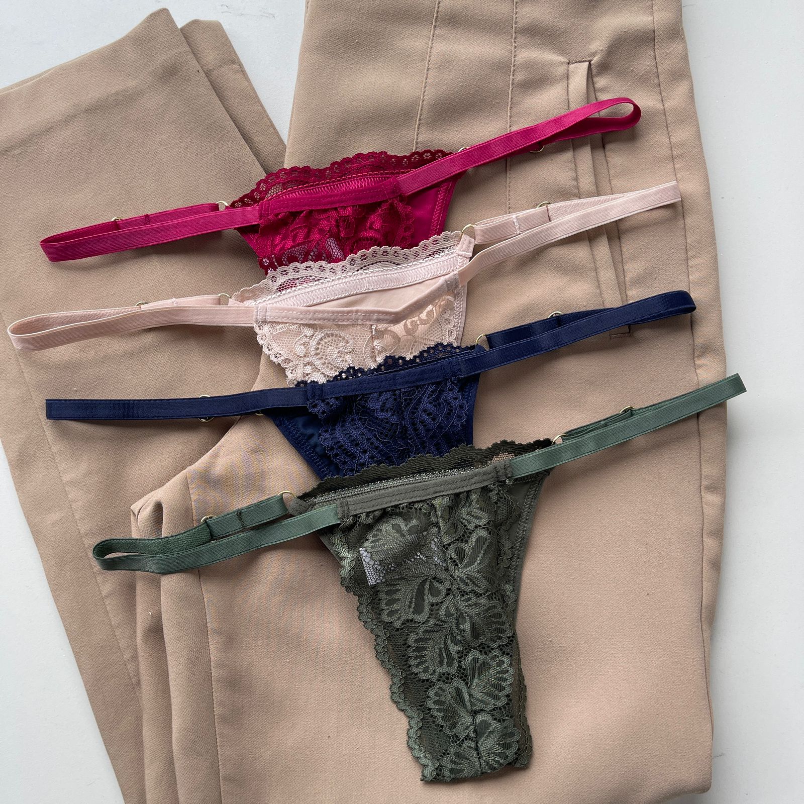 O kit é composto por quatro calcinhas de regulagem, desejo, nude, azul marinho e verde militar, com forro de microfibra na frente.