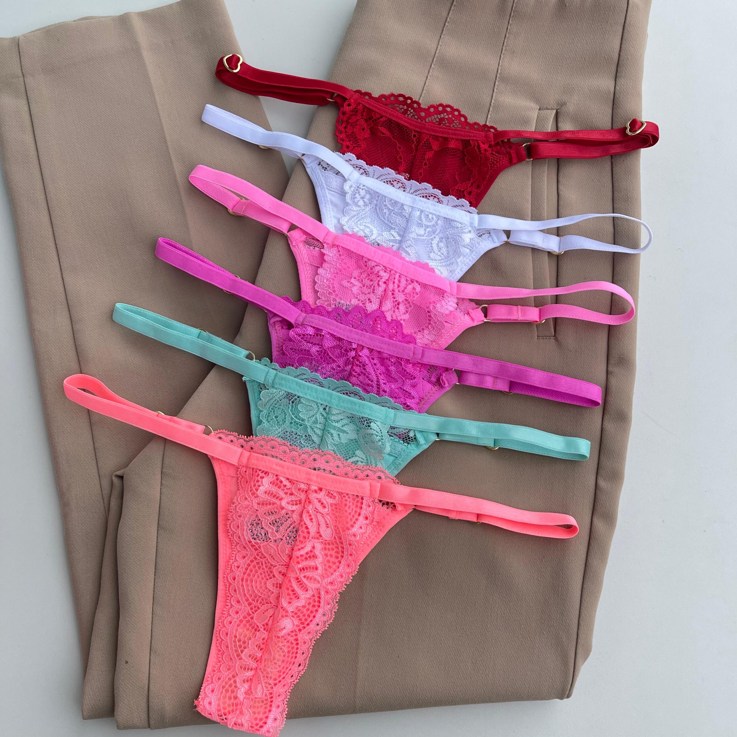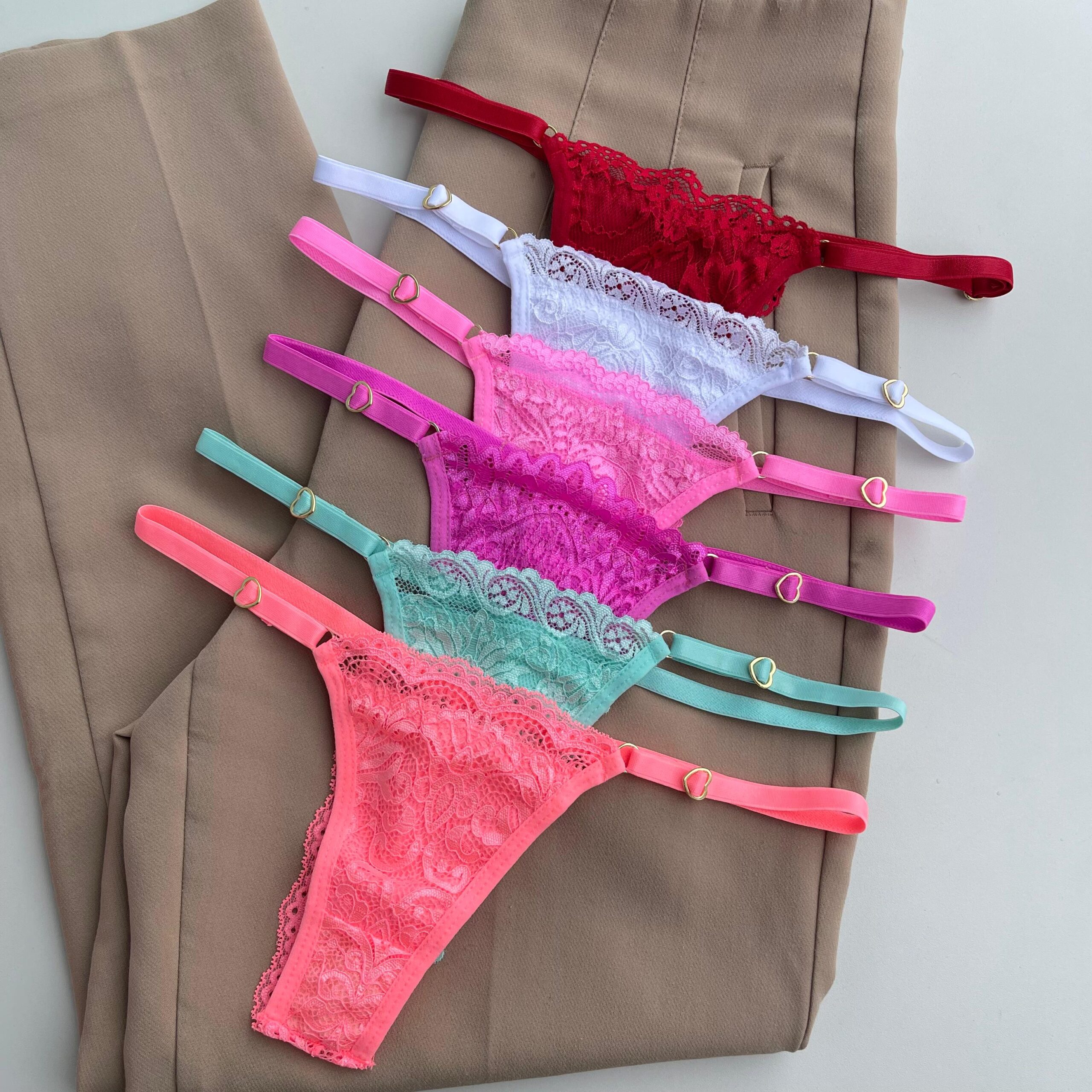 O kit é composto por seis calcinhas de regulagem, coral, verde acqua, rosa barbie, rosa bliss, branca e vermelha com forro de microfibra na frente.